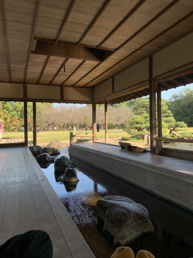 見てください...すごくないですか?!なんと建物の中に水が!!ここは水の流れを楽しむためにその昔江戸時代に岡山藩主池田綱政が命じ、庭園内の休憩所として造られたそうです。 いやぁ、昔の人はすごいなあ... さらさらと流れる水、天井に映る水のゆらぎ、そして音が、視覚的、聴覚的にも心地よくつい一時間ほど居座ってしまいました...いいリフレッシュになりました!岡山に行かれた際はぜひ皆様も立ち寄ってみて下さい✨