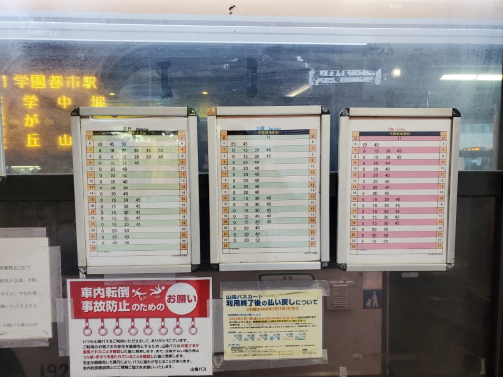 通勤時間帯だと、10分ごとにバスが来るみたいですね。ほぼ待ち時間ゼロですね。冬のこの季節にはありがたい!