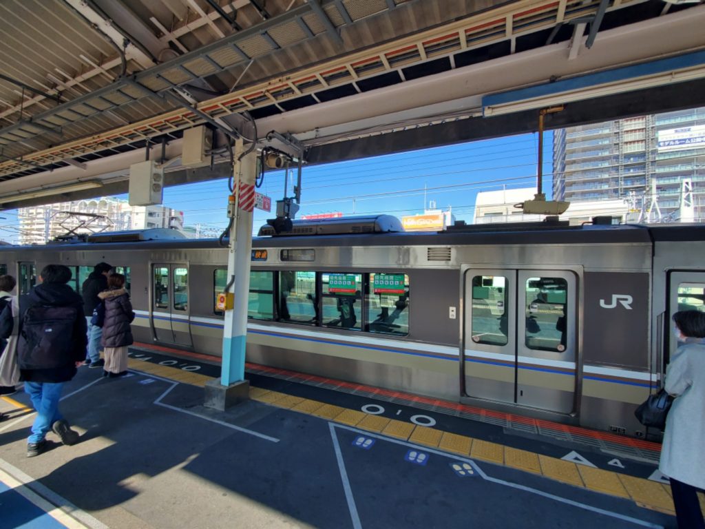 さあ、JR垂水駅から快速電車に乗り込みます。快速電車で大阪まで乗り換えなしで行ってもいいですが、今回は三宮で下りて新快速に乗り換えました。本当は手前の神戸駅で乗り換えたら座れる可能性も高いですよね。